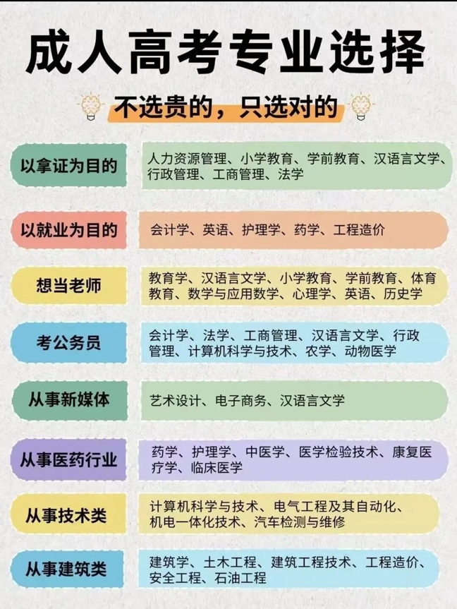 三、成人高考专业选择建议