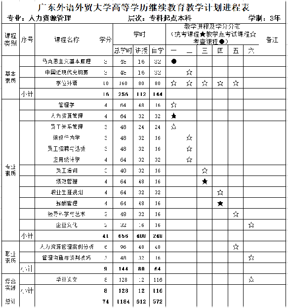 2、人力资源管理:是使学生系统掌握人力资源管理的基本理论与知识,并能结合案例和企业的实际情况灵活加以运用,使学生提高人力资源管理方面分析问题和解决问题的能力,从而为今后学习其它专业课奠定基础,也为学生毕业后在相关部门的实际工作打下坚实基础。主要学习和掌握工作分析研究、职务分析、工作实绩评价、职工选聘、劳动报酬等管理的原理和方法,培养学生从事人力资源开发与管理的能力。