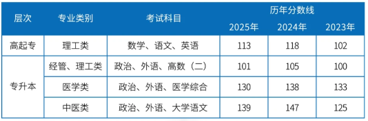 3.参加学校组织的学业水平考试,成绩≥210分。学业水平考试科目为一门专业基础课和两门专业课,成绩满分为300分。