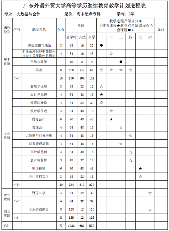 总学分77,其中基本素质课程16学分;专业素质课程49学分;职业素质课程4学分;综合实践课程8学分。