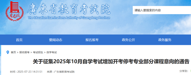 近期,部分停考专业考生反映,因2022年10月考试期间受新冠疫情影响未能参考,影响毕业进度。为此,考试院现征集2025年10月自学考试新增停考专业开考课程意向,具体事项如下: