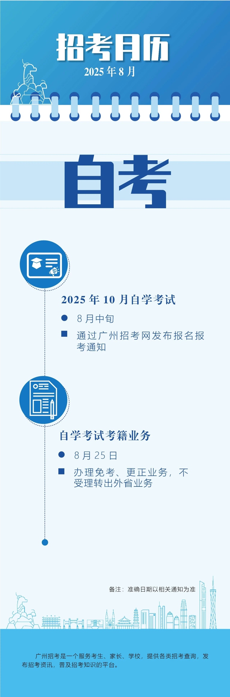 [广州]2025年10月自学考试报名报考通知将于8月中旬发布