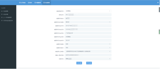 点击毕业管理 - 毕业申请 -【填好信息】- 下一步