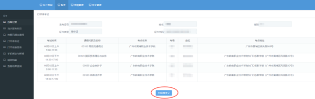 ③ 进入【打印准考证】页面,点击打印准考证,PDF格式下载保存到电脑即可。