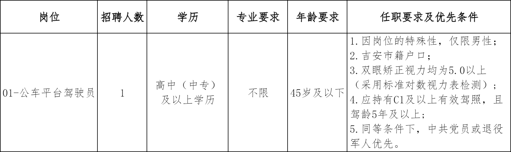 根据吉州区公务用车平台工作需要,现向决定面向社会公开招聘1名驾驶员,现将有关事项公告如下: