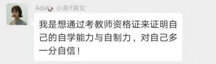 ?@ Ada 小美Y森女 想通过考教师资格证来提升自己的自学能力和自制能力,顺便提高一下自己的自信。