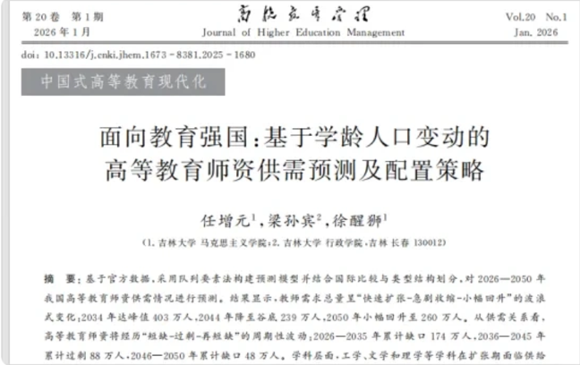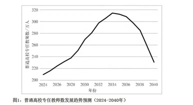 这是第一篇报告的一个预测,另一篇关于教育强国建设背景下高等教育专任教师资源配置的预测则显示,在十四五期间,也就是2026到2030年期间,全国高等教育专任教师需要补充