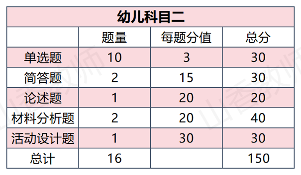 考试内容:不同的科目,题型、题量、知识点不尽相同。 考试题型:各科出现频率较高的有单选题、简答题、诊断题、案例分析题、教学设计题。
