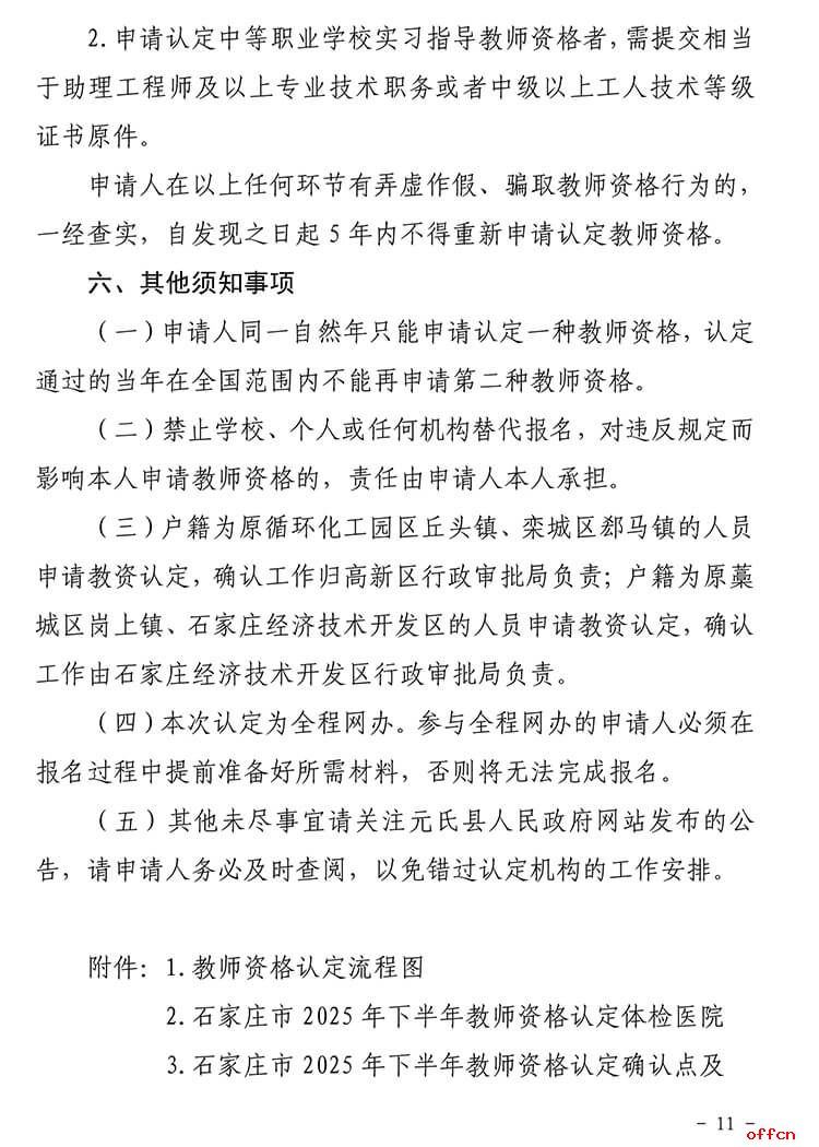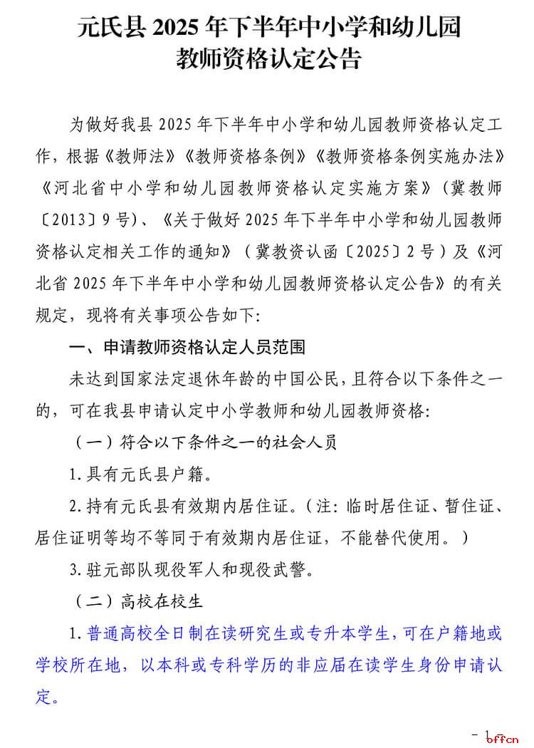 2025年河北石家庄元氏县下半年中小学和幼儿园教师资格认定公告