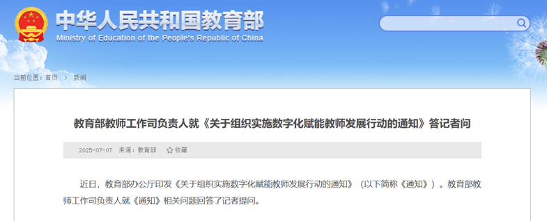 7 月 2 日,教育部发布了《教育部办公厅关于组织实施数字化赋能教师发展行动的通知》。