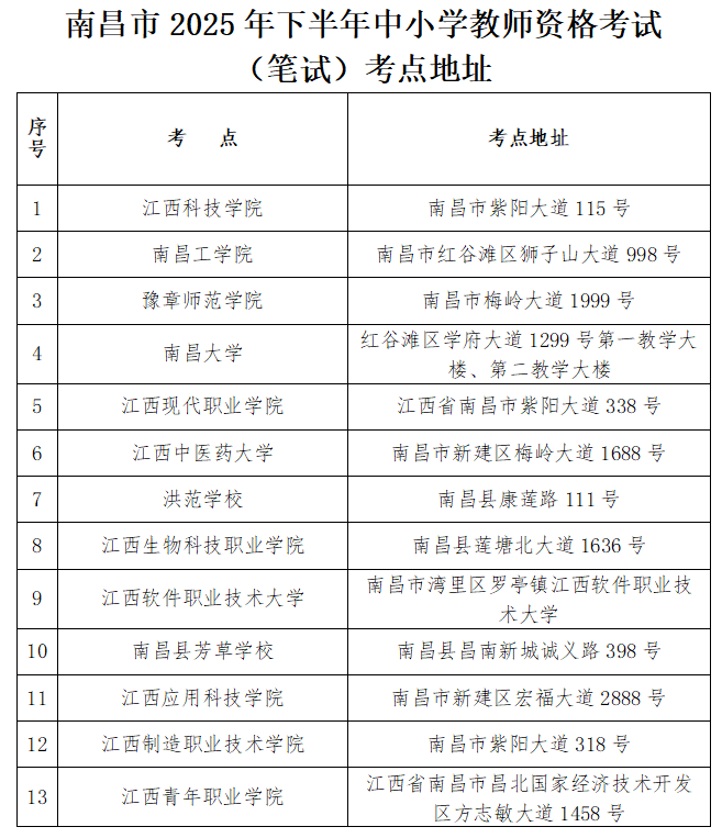 南昌市2025年下半年中小学教师资格考试笔试温馨提示