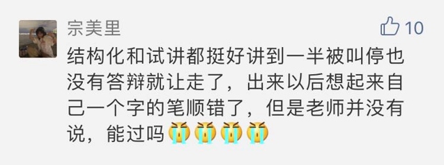 在这里课代表需要重点提示下,试讲被打断的情况很常见~并不是你讲的不好,也可能考官对你之前的表现很满意,觉得没有必要再浪费时间听下去了,但是最终面试成绩依然能通过哦~