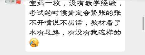 作为一名没有任何教学经验的宝妈,考试时一定会紧张的说不出话,并且看教材也完全没有思路,各位有没有同感?