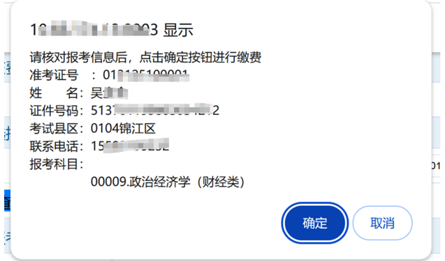 先分别核对报考信息、订单信息、身份信息,再前往缴费。