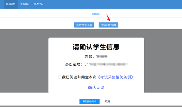 如二维码未出现,请考生点击取消等待或刷新界面后重新点击采集照片,二维码生成后避免点击页面。