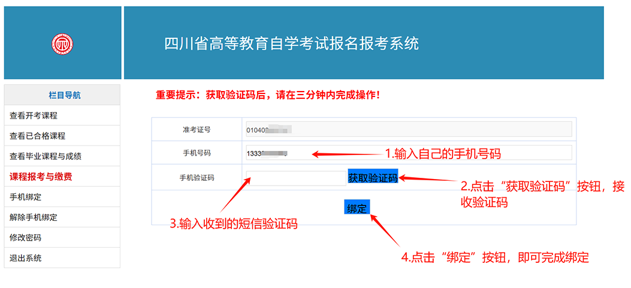 (一)在手机绑定页面,考生点击“获取验证码”按钮。