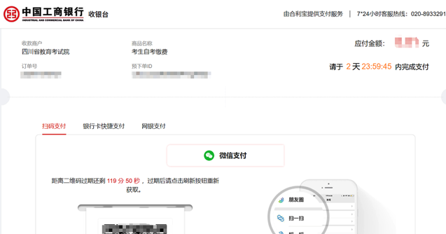 2. 待系统弹出支付页面,核对订单无误后扫码支付(若无弹出,请检查是否浏览器对弹出式窗口做了拦截)。