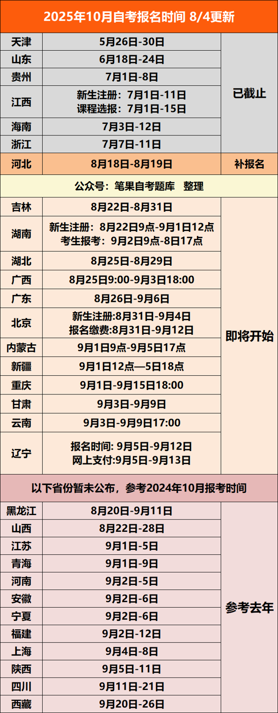 2025年10月自考将于10月25—26日考试,12省即将开始报考10月自考。
