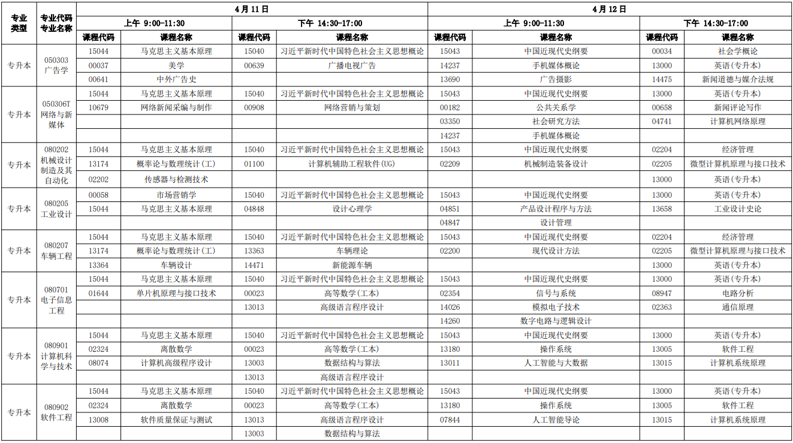 2026年1月广东自考本科开考课程表: