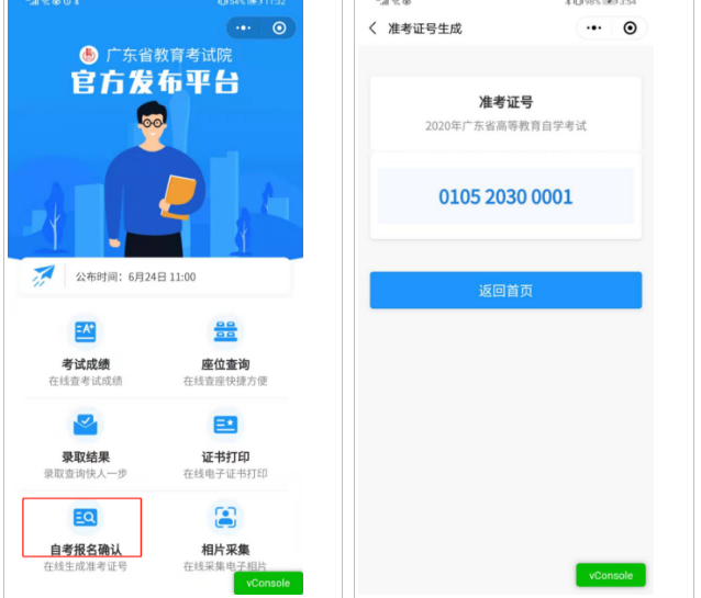 在小程序首页找到自考报名确认的入口,输入预报名与密码后生成准考证号,完成正式报名。