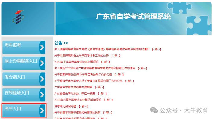 第一步:登录广东省自学考试管理系统(网址:https://www.eeagd.edu.cn/selfec/)点击考生入口