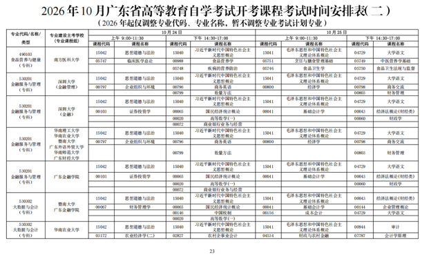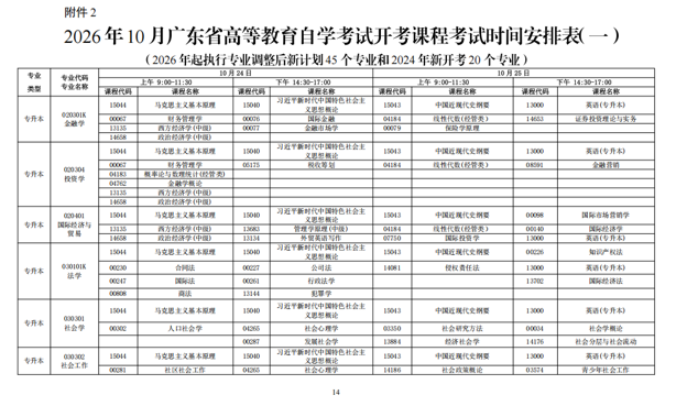 一、10月广东自考开考课程
