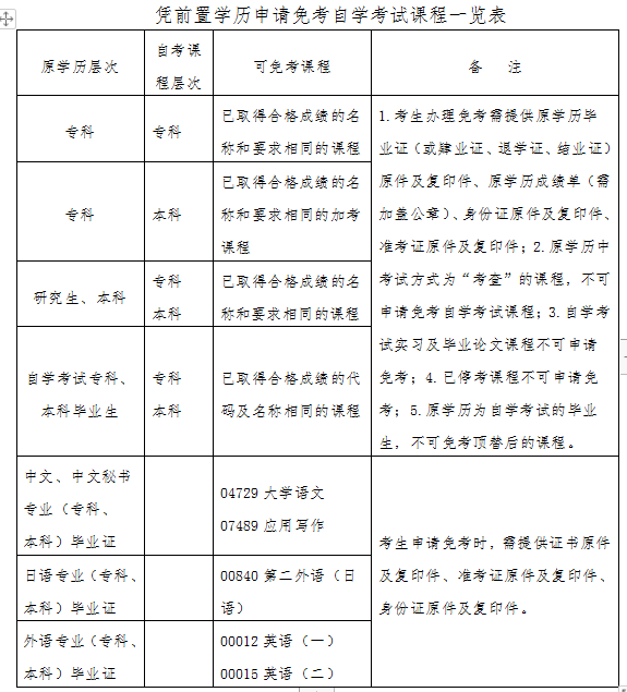 国家承认学历的各类高等学校及自考专科以上(含专科)的毕业生(及肄业生、退学生)报考自考,根据有关规定,可申请免考已学过并考试成绩合格的有关课程。