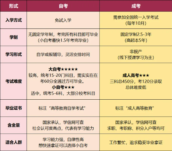 2026年自考VS成考的全面对比 ,看你适合哪个?