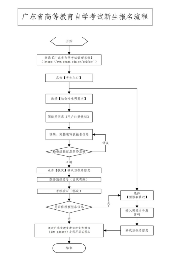 登录广东省自学考试管理系统→ 点击“考生预报名”→填写个人信息→获取预报名号。