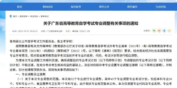 1、广东自考52个专业进行专业调整(包括专业代码、专业名称、考试计划表等);