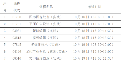 2025年下半年由北京北大方正软件职业技术学院主考的高等教育自学考试传播与策划专业实践考核共有7门考试科目,经我办研究决定,计划定于10月18日、19日举行考试。现将具体考试计划安排如下:
