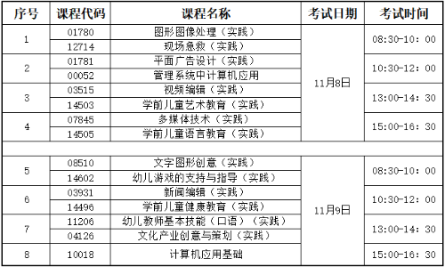 2025年下半年由北京北大方正软件职业技术学院主考的高等教育自学考试实践考核共有15门考试科目,经我办研究决定,计划定于11月8日、11月9日举行考试。现将具体考试计划安排如下: