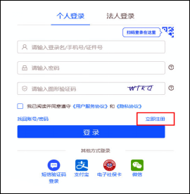 (四)进入下图所示的“个人登录”页面。如果从未使用过山东省政务网,登录前需要先完成个人注册,点击右下角的“立即注册”,填写基本信息完成个人注册账号。个人注册账号完成后,返回“个人登录”界面。