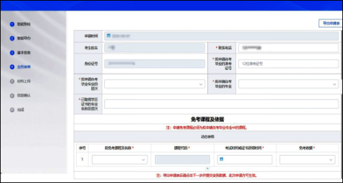 4.填写完业务表单后,点击“下一步”按钮,根据提示导出申请表,用于考生个人留存。