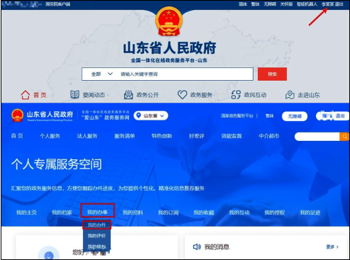 “对自考考生免考课程的确认”审核完成后,我省会将审核结果回登至该网站,考生可登录“山东省政务网”,点击右上角“姓名”进入“个人专属服务空间”界面(如下图),在“我的办事”中“我的办件”页面查找“对自考考生免考课程的确认”,查看办件状态,点击“操作—查看”可查看详细的办理情况,同时也会收到审核结果告知短信。