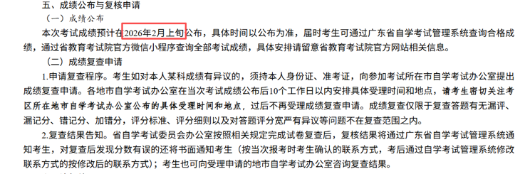 广东省2026年1月自考成绩预计将于2月上旬公布,考生可通过以下3种方式查询考试成绩: