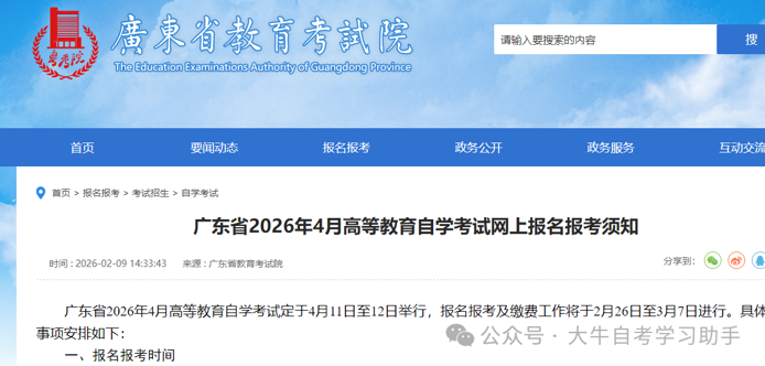 根据广东省教育考试院及广州招考的通知,2026年10月广东高等教育自学考试时间已基本确定,考生可提前锁定关键节点,精准规划备考节奏!