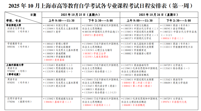 大家好!上海考试院近日发布了2025年10月自考考试安排,一起来看看吧!