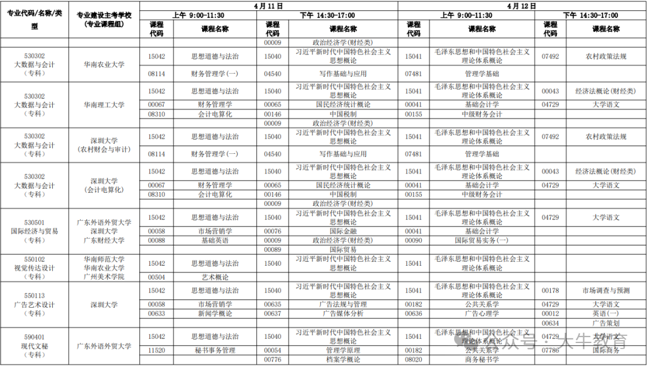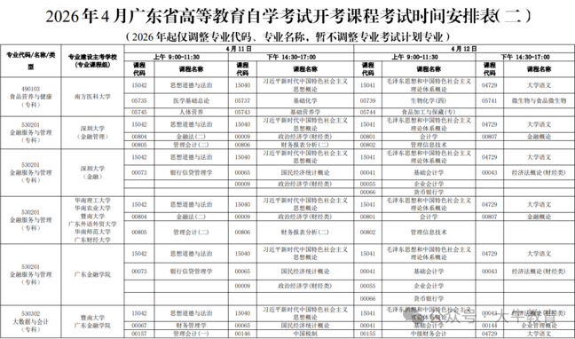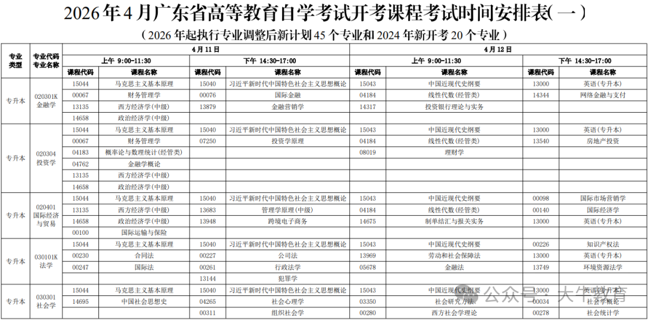 2026年广东自考专科、本科招生专业院校汇总表,附开考课程安排汇总!