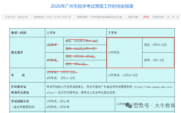 根据广东省教育考试院及广州招考的通知,2026年10月广东高等教育自学考试时间已基本确定,考生可提前锁定关键节点,精准规划备考节奏!
