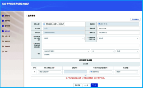 5.填写完业务表单后,点击“导出申请表”按钮,可打印免考申请表留存。