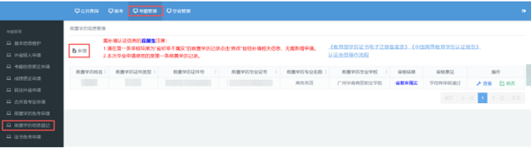 点击“考籍管理”,点击“前置学历信息登记”,点击“新增”,按照界面填写前置学历信息(本科需要,专科不要)