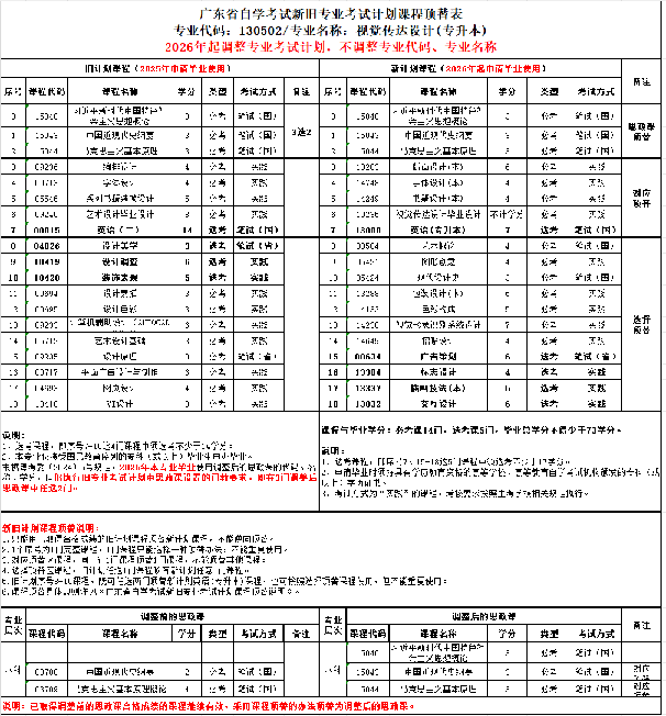 本次专业考试计划调整按年度区分新、旧专业考试计划,2026年前执行的专业考试计划为旧计划,2026年起执行的专业考试计划为新计划。各专业新旧计划的课程设置不同,有较大变化。