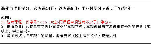 我们需要看专业选考要求:7、15-18这5门课不少于17学分,该同学的英语(专升本)7学分已经在前面用2门课程顶替了,现在该学生还需要选考学分为17-7=10学分