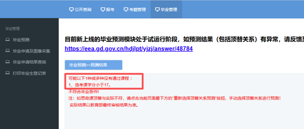 目前毕业预测模块处于试运行阶段,若顶替结果与预期不符,可按系统提示反馈问题,最终结果以教育部审核为准。