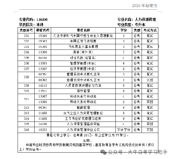 2026 年 1 月起,广东大牛教育力资源管理本科全面启用新课程计划,对比旧计划,这2 点变化直接影响你的拿证速度和难度: