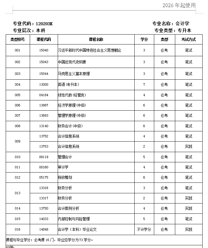 2026年广东自考会计学本科考试科目(全)公布!附各科目学分详情!